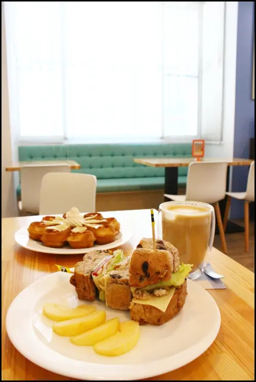 終於買到了那塊合桃酥端盤子進店內,打算不說什麼另找個位置坐下,結果店員看到我進店竟轉頭望了一下早已坐在我原本座位的女生說“哦,她坐了妳的位置呀?她可能不知道吧~”店員的態度還真是奇怪ㄟ!那位顧客當然不知道丫,而且這本來就不是那位顧客的問題吧!店家有自己經營模式得店頭店內商品分開結帳對這部份我選擇尊重,但客人已入座點好餐點了,是因為被告知店頭賣的東西要另外自行去加購才短暫離席,店內至少要有個保留位置的措施會比較恰當吧!