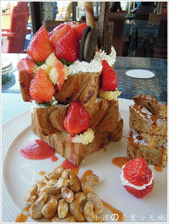 小凉都覺得草莓和大球冰淇淋都要將吐司層給壓垮了耶><