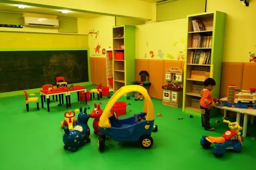流行壁貼和舒適沙發,小孩在遊戲室玩樂的同時,可以和好姊妹聊聊媽媽經~