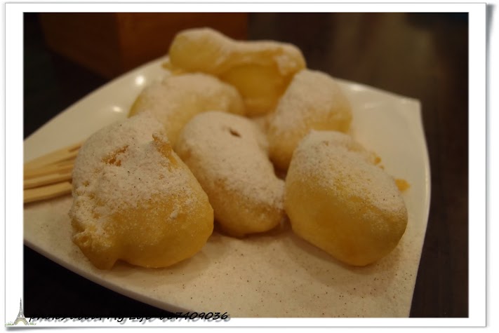 這道炸蘋果(60元)是我當天心中的NO.2 原因就是混著肉桂粉的糖粉啦! 乍看還以為是梅子粉呢(笑)
