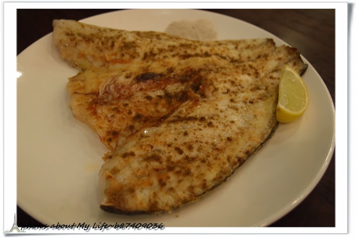 沒有烤魚常見的焦香而是淡淡的火烤香氣 沒有鹹油的醬汁只有撒上鹽和胡椒調味