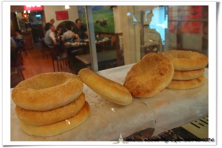 店前就看到玻璃櫃裡的饟餅 外凸內凹的圓餅還撒有大量芝麻 光看這餅就很有新疆風