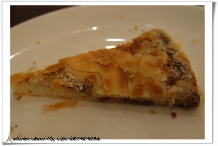 磨得細碎的芝麻變成紮實的內餡 咬起來香甜卻偏乾了點 很特別的一道甜點