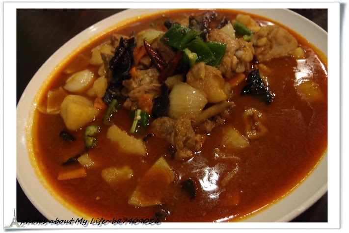 上桌時看到這麼大盤都傻眼了 除了雞腿肉外還有青椒、洋蔥、蘿蔔、木耳跟我最愛的馬鈴薯