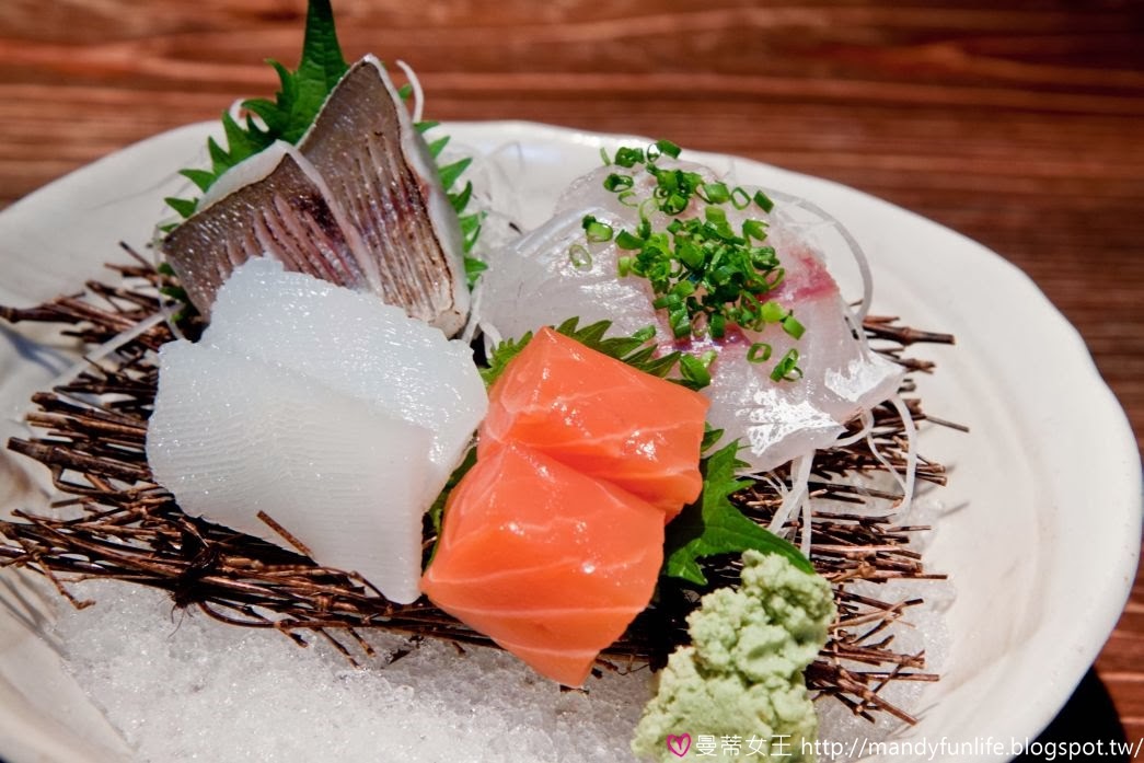 「綜合生魚片」,絕對是來御食堂必點的菜式,嚴選當天的新鮮漁貨,每次的生魚片種類並不固定~ 今天的生魚片盤有油鯛、金梭、透抽和鮭魚,光看顏色和光澤就知道絕對新鮮!