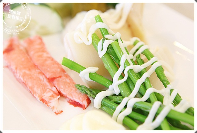 蘆筍跟筍子搭配美乃滋在炎熱的夏天吃起來格外清爽美味,搭配著生魚片跟蟹肉瞬間就讓胃口大開.