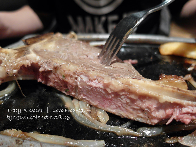▲特選紐西蘭丁骨厚切牛排,有著菲力的甜嫩和紐約客的嚼勁的T-bone,