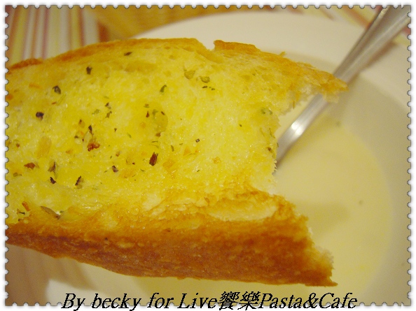 大蒜麵包:在湯品後面跟著送上來的,外皮烤的很酥脆,內層很柔軟,吃起來有淡淡的蒜味,但並不會明顯,我最愛這種麵包。