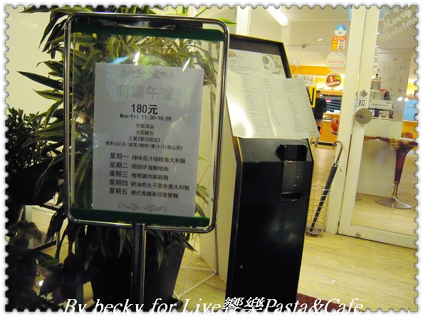 Live饗樂Pasta&Café主要是以義大利麵為主,也有排餐類,還有燉飯類,當然也有商業午餐。