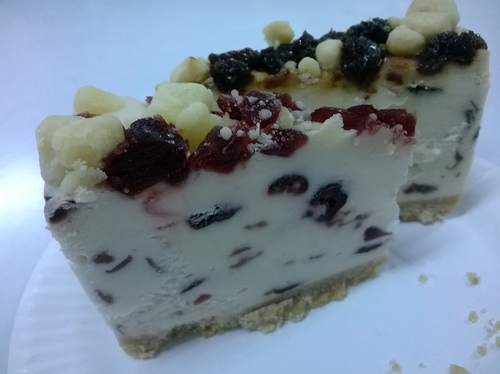 經過低溫冷凍,奶酥稍微軟掉,但奶香依舊、酥軟不膩口,柔美的粉紅色澤不僅來自蔓越莓乾,更來自藏在乳酪中的嬌豔玫瑰瓣,其淡薄優雅的香氣已深深地化入乳酪、甜脆的蔓越莓乾與玫瑰花瓣讓乳酪吃起來很有層次,濃郁的起司、淡雅的玫瑰香與酸甜的蔓越莓如花朵般在舌尖逐一綻放