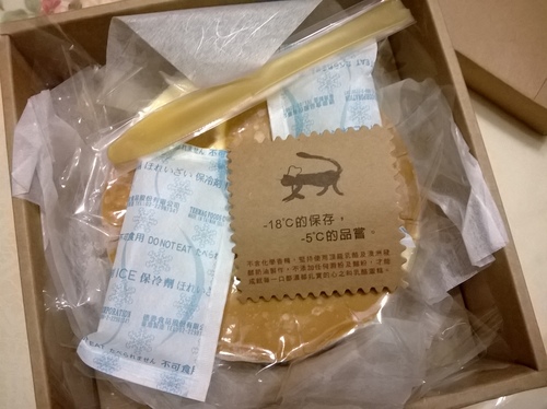 雖然已經事先切好,不過剛從冷凍拿出來時還是硬地跟石頭一樣,最好先退冰個10分鐘再用刀子自己切一遍(別懷疑,真的很硬,本人因為猴急想吃蛋糕而折斷了一把鋼刀QQ)