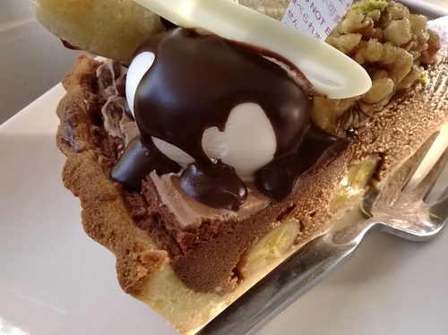 仍舊是相當地澎派呀~焦糖香蕉、核桃、鮮奶油還淋上了巧克力醬
