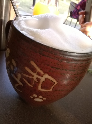 沒有拉花,直接擺上一坨粗糙的奶泡,反而是杯子本身比較吸引人呢!