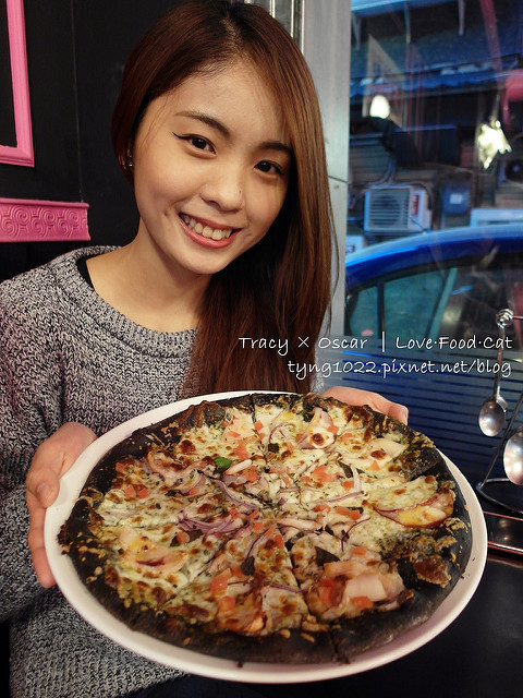 ▲兇猛深海墨魚披薩~名字聽起來很厲害的樣子!大小是十吋,但是因為是薄皮的,