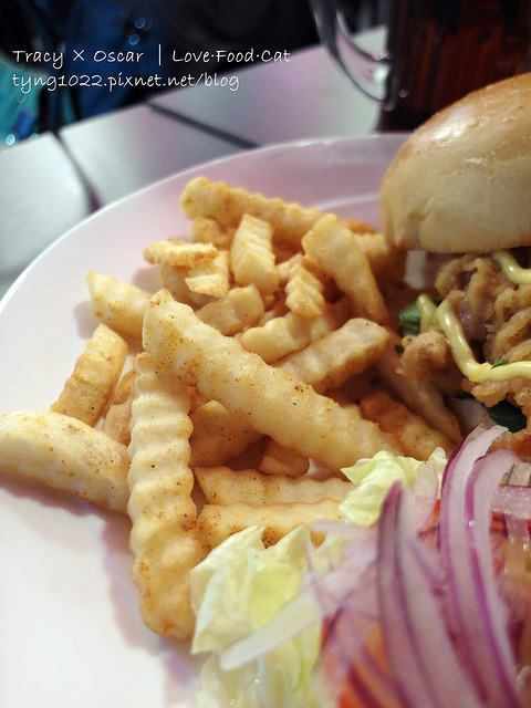 ▲和小拼盤一樣的薯條,上頭撒了梅粉增添風味。