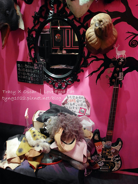 整體大膽的使用黑粉配色,加上播放著搖滾樂,真的是很Rock的一家店~