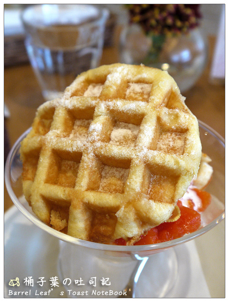 是比較像比利時鬆餅的格子貌~但又不致於到像之前吃過的 比利時鬆餅 那麼硬紮實,
