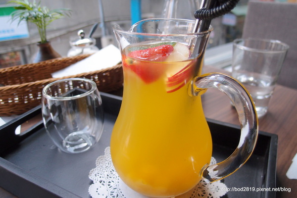 水果茶的底是百香果,所以喝起來酸酸甜甜又帶點百香果味,