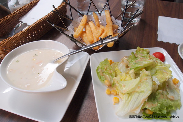 想說應該不會先上主餐才上沙拉跟濃湯吧?