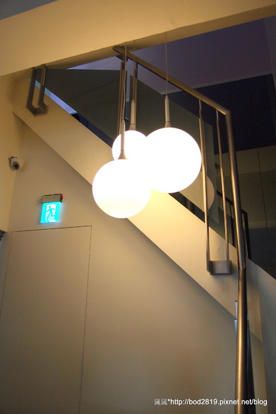 樓梯口的燈是圓形的,好像是大中小的掛在一起,很特別,