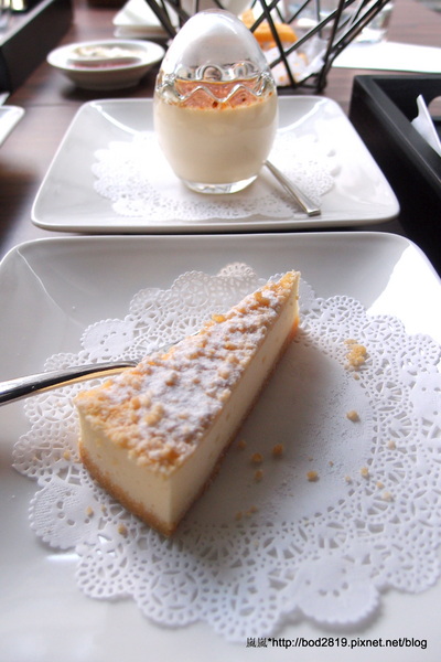 然後甜點是烤布蕾跟香草起司蛋糕,甜點下面鋪了一張圓圓的紙滿好看的,
