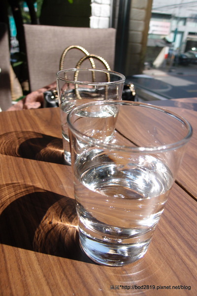 桌面上有一大瓶水,店員會幫我們倒好,