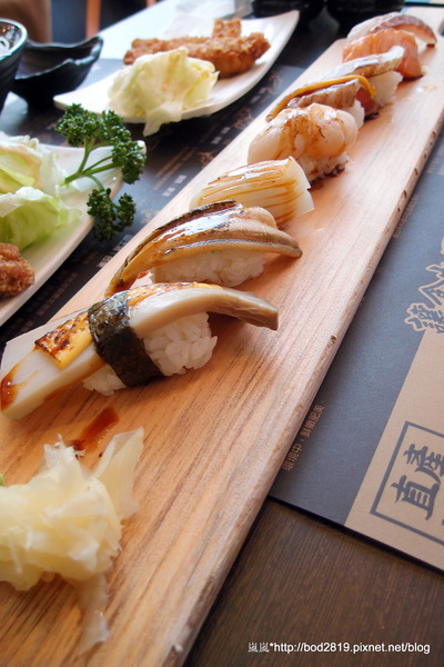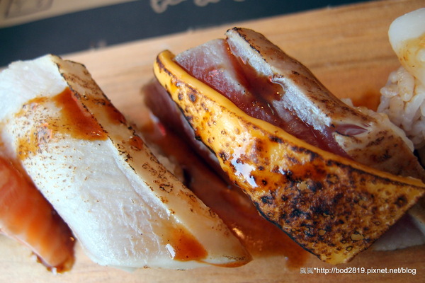 我第一次看到炙燒壽司會有杏鮑菇的耶,一開始還在猜那個是什麼,