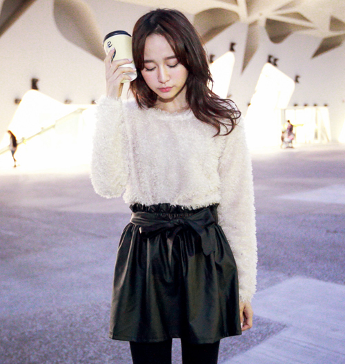 毛茸茸跟貴婦一樣的毛海上衣跟裸色短靴是一起買的,