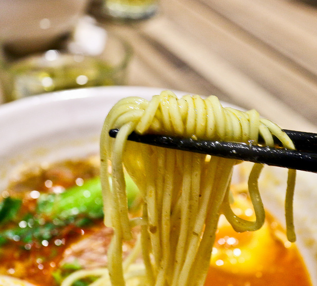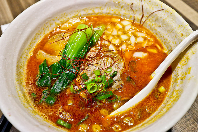 湯頭入口並不會很辣,而辣感妥善的壓住了豬骨湯頭常見喝多會膩的問題