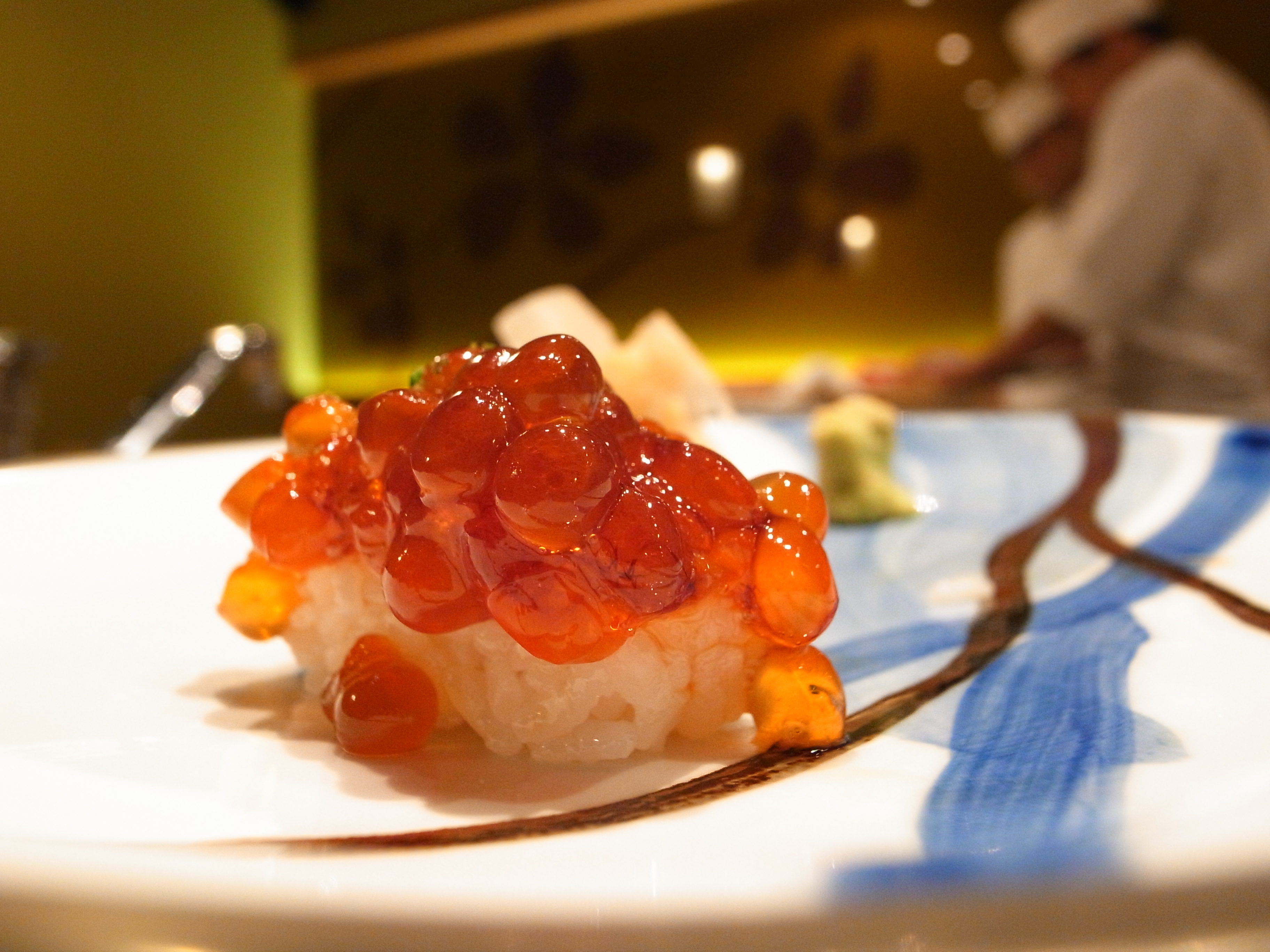 醃製出來的濃郁與新鮮卵液的爆漿稍微藉著醋飯來緩和令人至今難以忘懷。