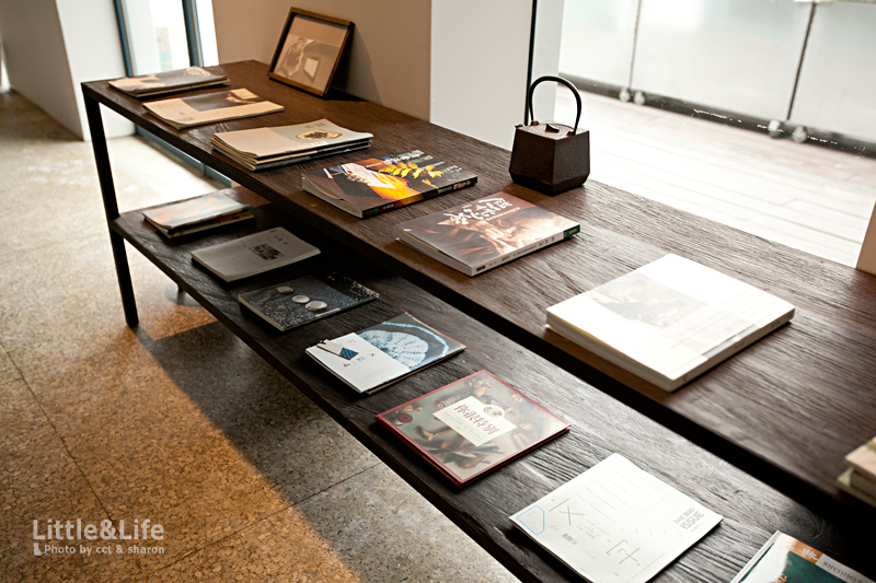 後方的小型閱讀間 提供客人閱讀與品茶 桌上擺放為有關於茶的雜誌、書籍