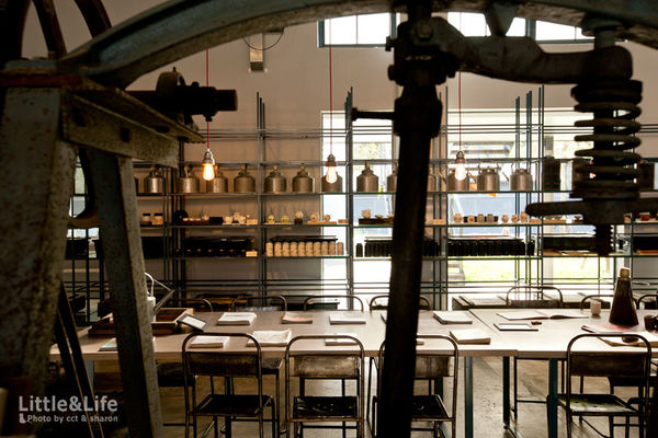 走著工業風的設計風格 許多藍色鐵件能表現出百年沈穩的老茶廠氣息