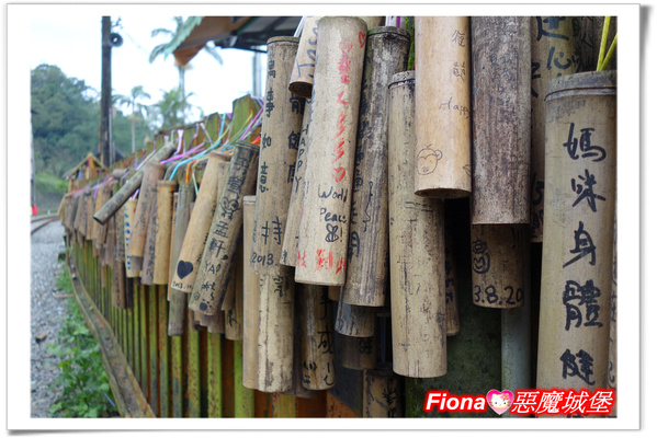 鐵道兩旁掛滿了密密麻麻的許願竹,我真愛這一整排小竹筒,這肯定是「菁桐」的一大特色,也應該只有這裡才看得到吧!!