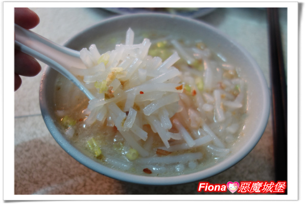 我點了一碗招牌的米粉湯,裡頭剪成一段段的米粉,一直是我很喜歡的料理,吃起來比一般炒的米粉更有嚼勁,湯頭方面也很香醇,還不錯!!