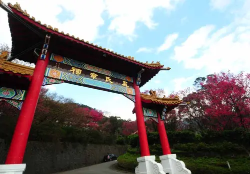 趁著今年春節的時間,這濃濃中國風的建築,和著藍天白雲下的美麗櫻花,說什麼我也一定要參一腳。