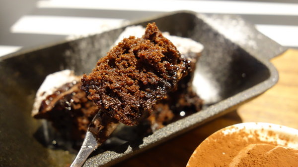 微熱的布朗尼在切開時可以聞到濃濃的巧克力香