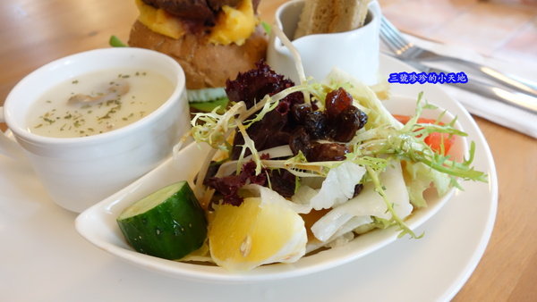 這款早午餐裡還附上蠻大一盤的沙拉耶!