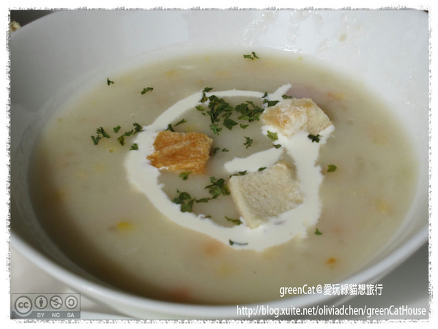 麵包有些太硬不好咬,不過濃湯還不錯,上面有多淋一圈應該是奶油,