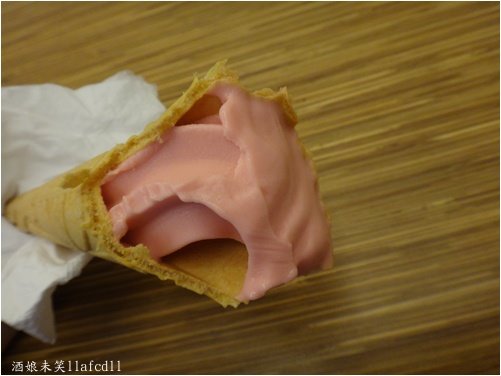 雖然天氣很冷,不過,草莓霜淇淋真的很好吃,