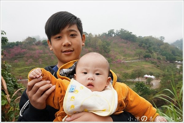 凉弟看到滿山好景,也快速的將阿弟咕就定位