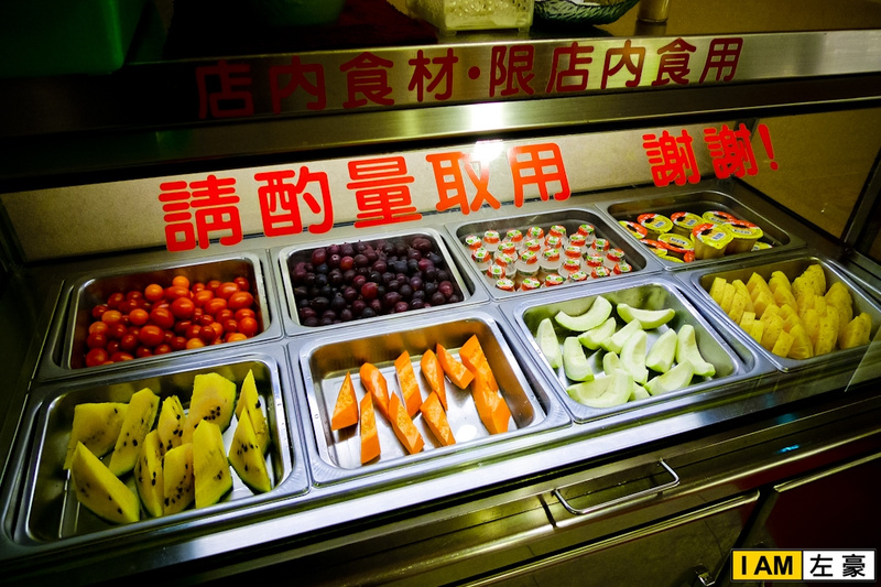 上頭印了八種鍋底料和冰品、水果、無限享用