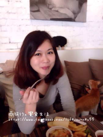 吃飯的同時貓咪一直在客人身邊磨蹭來磨蹭去,超可愛的!完全不怕人喔