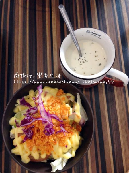 友人點的是起司雞肉千層麵,很快的沙拉和濃湯就上桌了