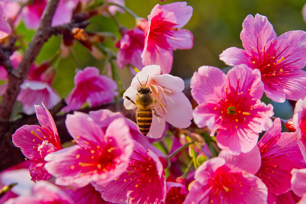 花卉盛開往往會吸引蜜蜂飛舞其中