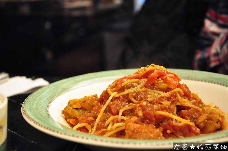 義大利麵搭配香煎雞肉,辣椒味在甜尖散發,