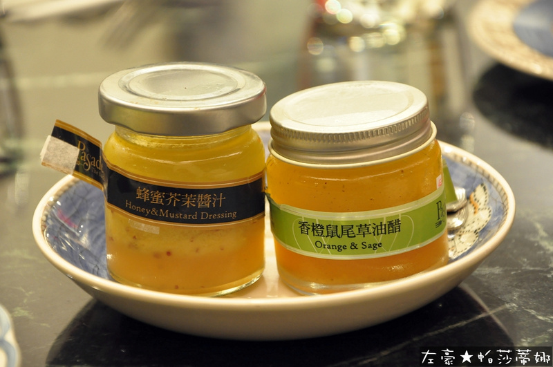 香橙鼠尾草油醋 與蜂蜜芥茉醬 。