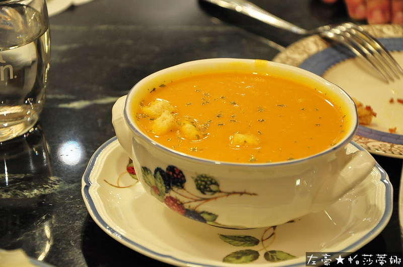 南瓜與奶油湯頭濃郁,喝起來很順口,湯品
