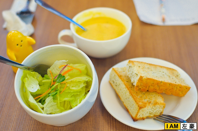 飲料、麵包、濃湯or沙拉 (二選一)。