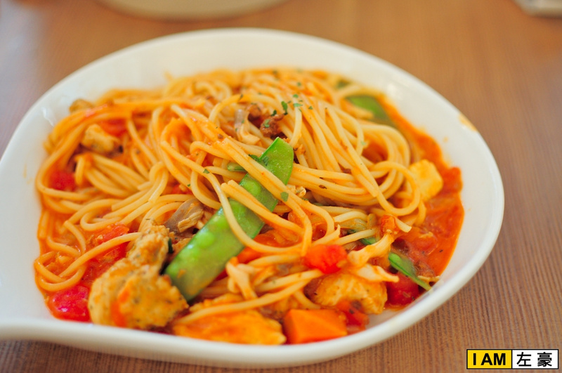 辣椒調味的義大利麵,帶點鹹度,吃完整盤也