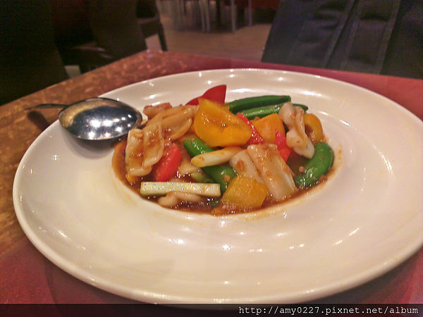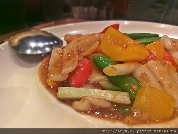 紅黃甜椒及豌豆莢相當清脆可口,同樣保留了甜美的水份,與XO醬搭配起來很不錯